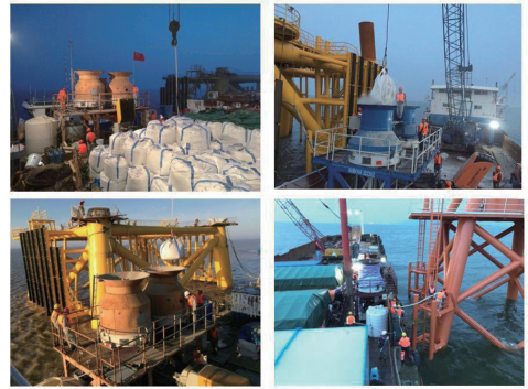 海上升壓站導(dǎo)管架基礎(chǔ)灌漿。
