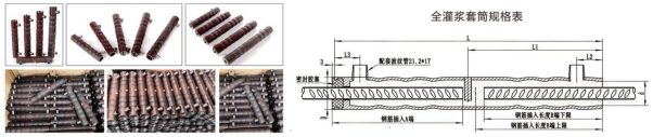 一、全灌漿套筒外觀呈中空圓柱狀,其長度、壁厚由精確計算確定。產(chǎn)品結(jié)實簡練,套筒強度至少達到同規(guī)格螺紋鋼強度的1.5倍以上,為構(gòu)件提供更安全更可靠的保障。表面經(jīng)過精密模具擠壓形成凹凸不平面, 大大增加了套筒與混凝土的摩擦力和結(jié)合強度。